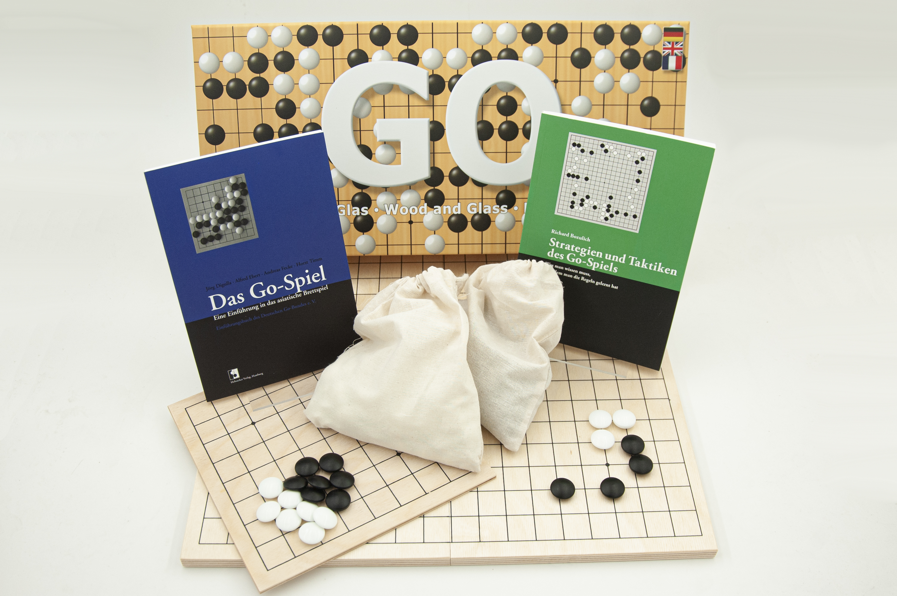 Unsere Go-Box enthält ein gut verarbeitetes 11mm-Holzklappbrett (12-br014) aus Multiplex Birke, 2x160 8mm-Glassteine (12-st005) sowie ein dreisprachiges Regelheft (11-hv011)