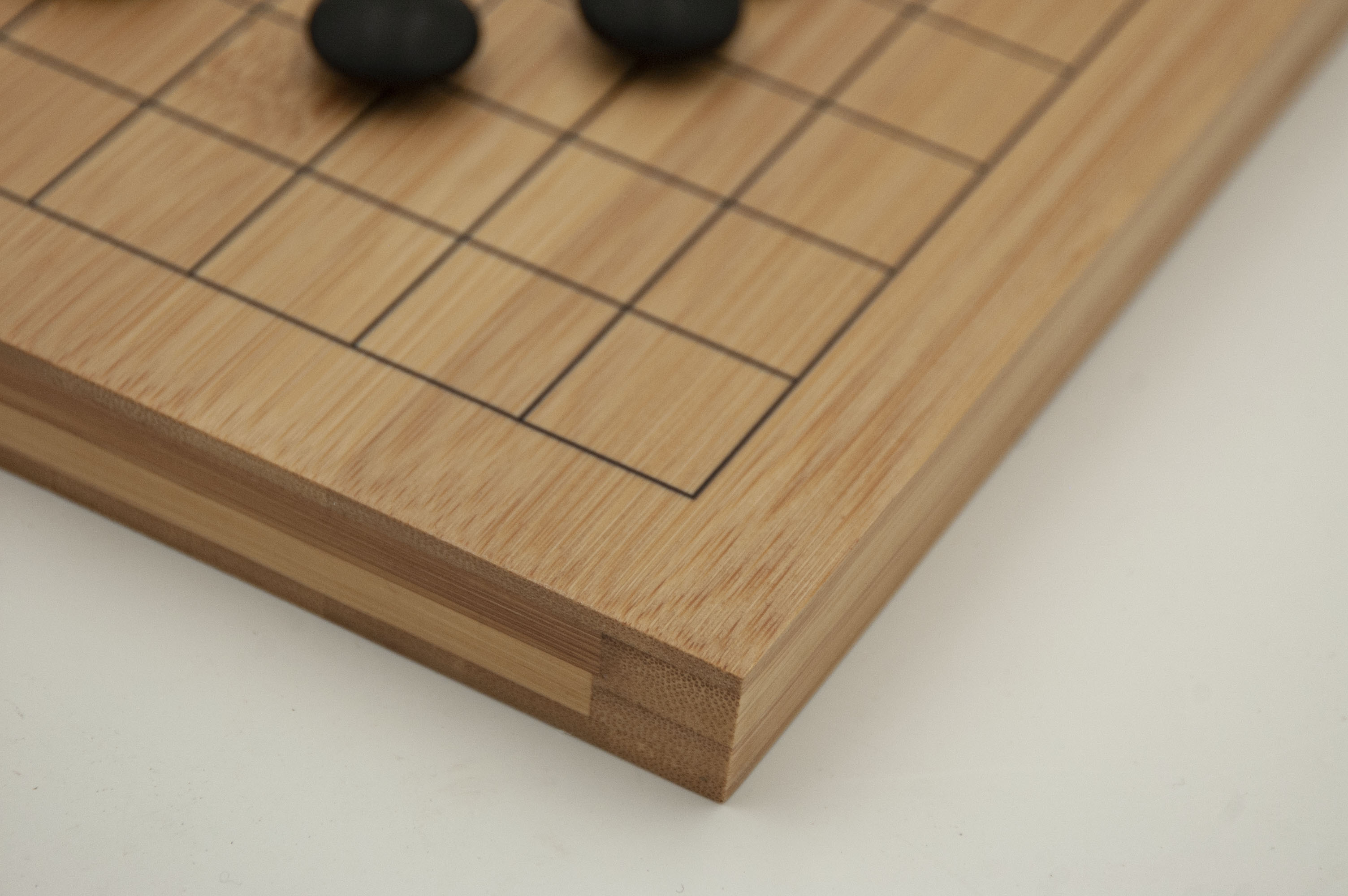 Solides verarbeitetes und widerstandsfähiges 19x19-Brett aus Bambus mit gedruckten Linien und einem 13x13-Brett auf der Rückseite.