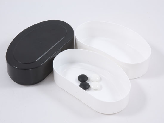 leider sind die deckel etwas zu "tief", als dass es angenehm überschaubar ist, wieviele steine des gegners man gefangen hat, wenn man diese in den deckel legt... dies tut jedoch der funktionalität im ganzen (als aufbewahrung der steine) keinen abbruch.