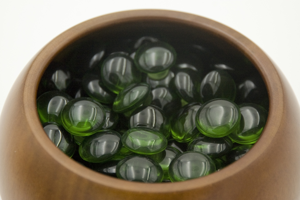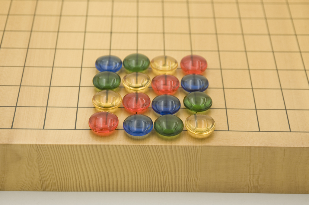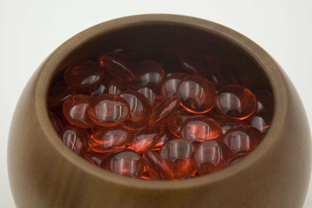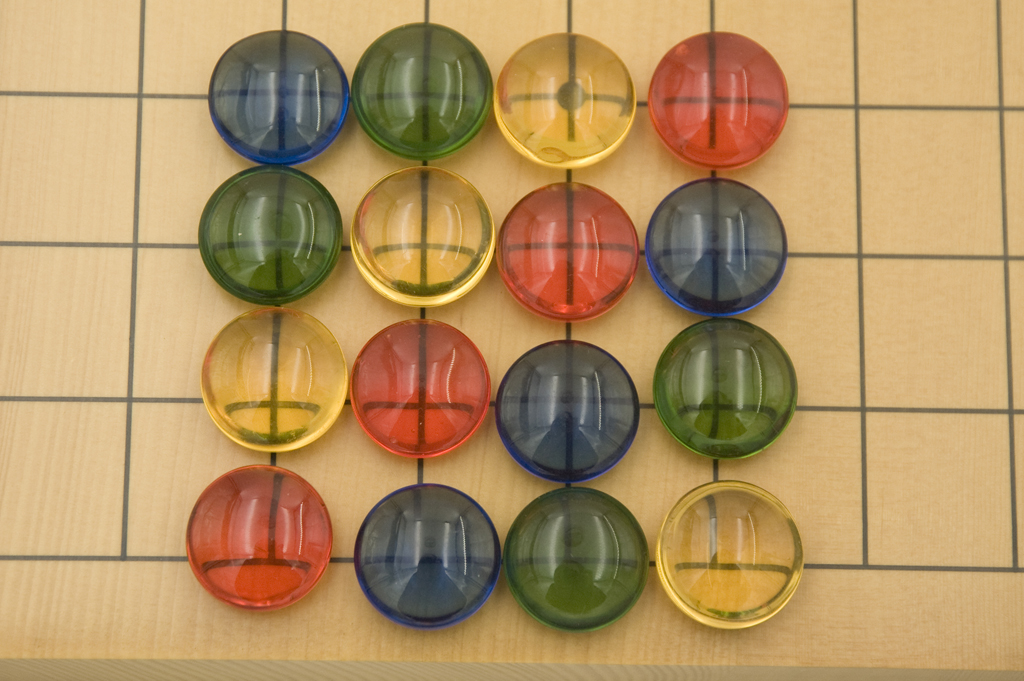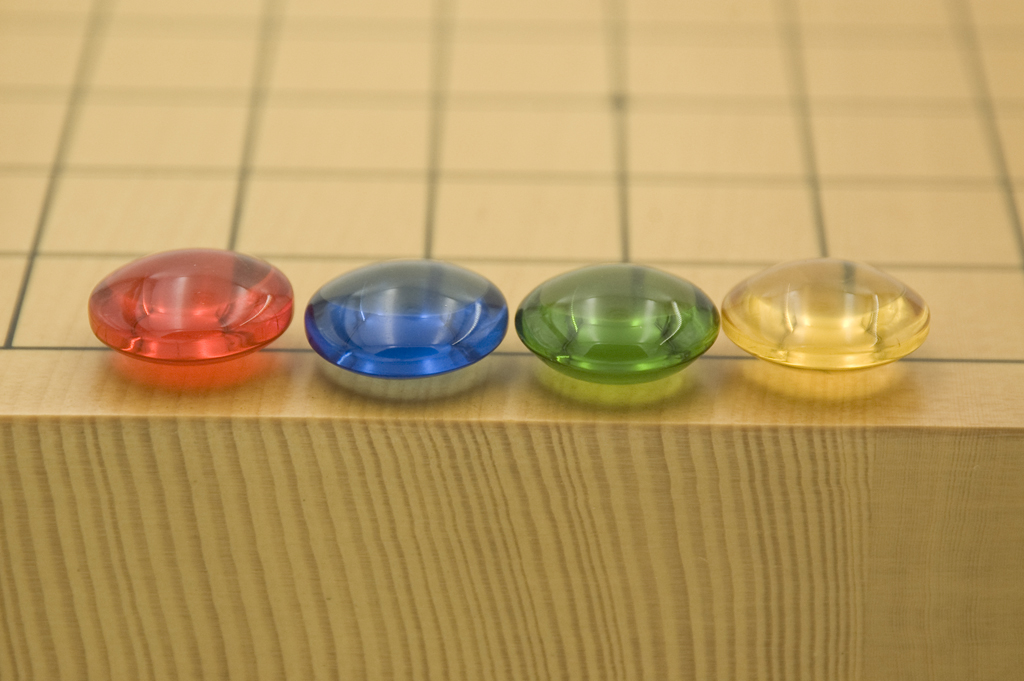40 (9x9-Brett) oder 180 (19x19-Brett) sehr hochwertige farbige Go-Steine aus Glas, 21,5 x 10 mm, für das Spiel mit Kindern auf dem kleinen Brett, Drei- oder Vierfarben-Go oder einfach für das Spiel mit andersfarbigen Spielsteinen.