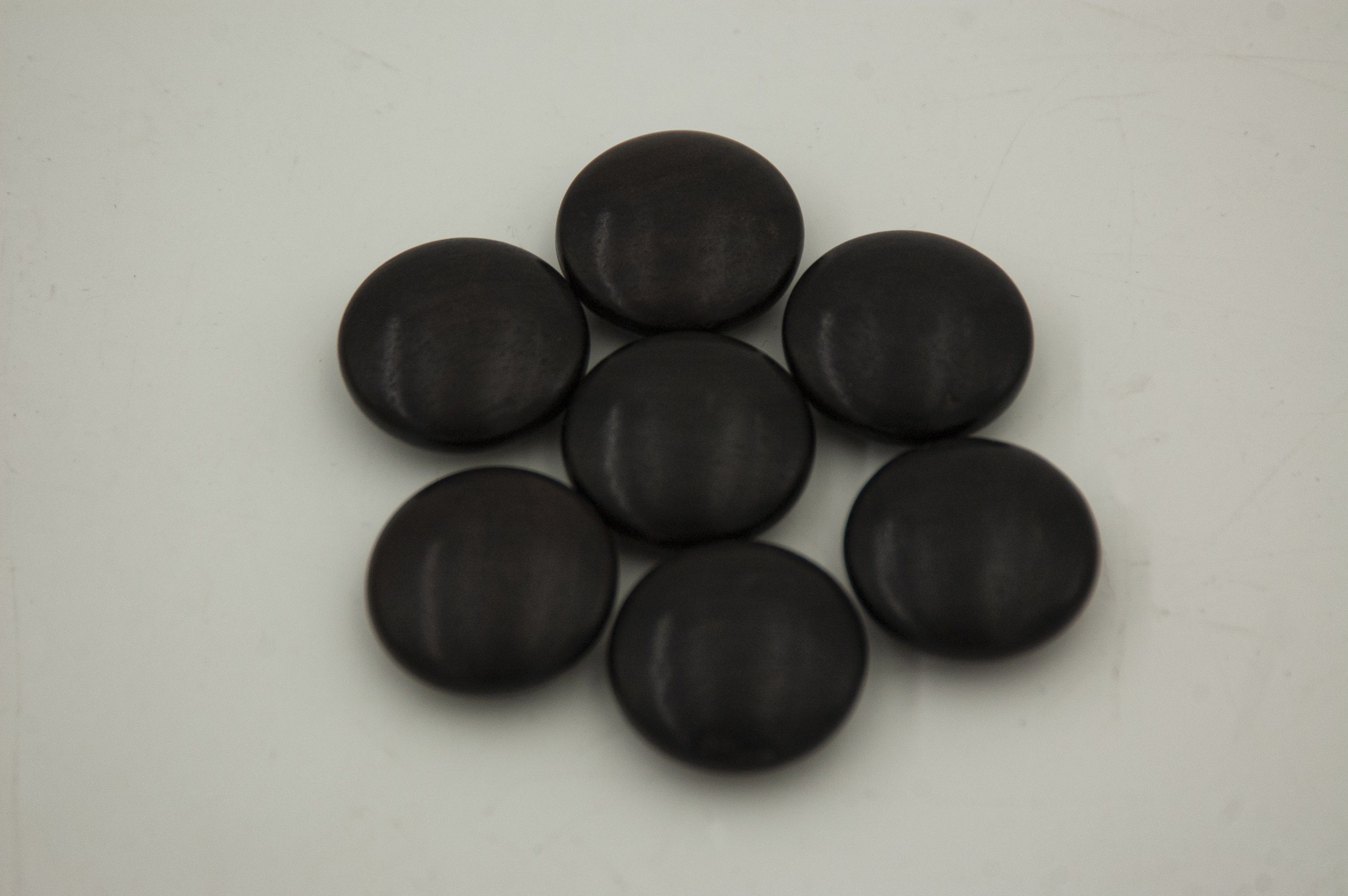 Diese Steine aus Ebenholz sind aus Holz der Gattung Diospyros. Ebenholz zeichnet sich durch seine tiefe, schwarze Farbe und seine dichte Textur aus. Das Holz ist schwer, hart und hat eine feine Maserung. Ebenholz wird aufgrund seiner ästhetischen Qualitäten und Härte in der Möbelherstellung, der Herstellung von Musikinstrumenten (insbesondere Griffbretter von Streichinstrumenten), Schnitzereien, Schmuck und anderen hochwertigen Handwerksarbeiten verwendet.