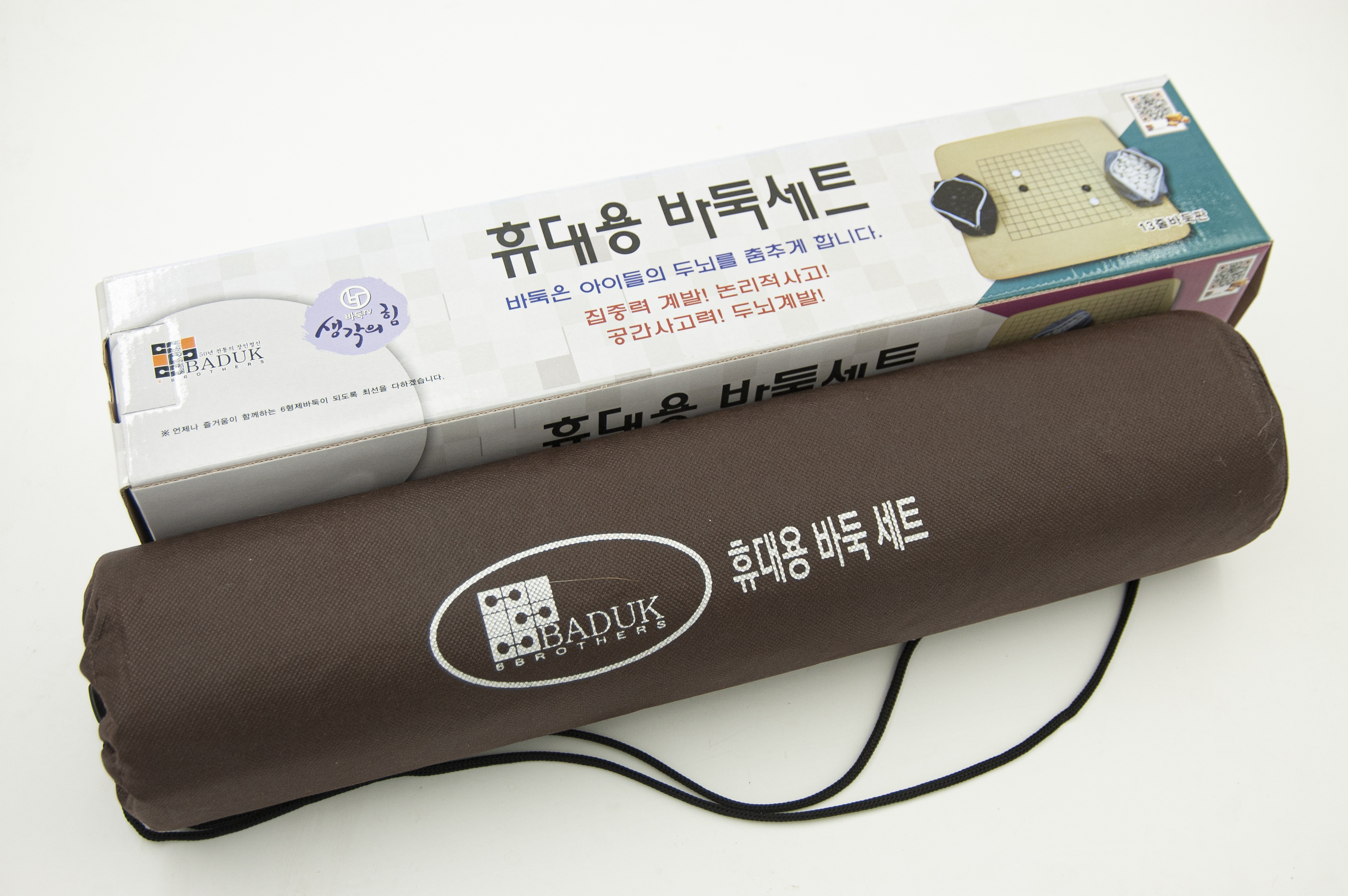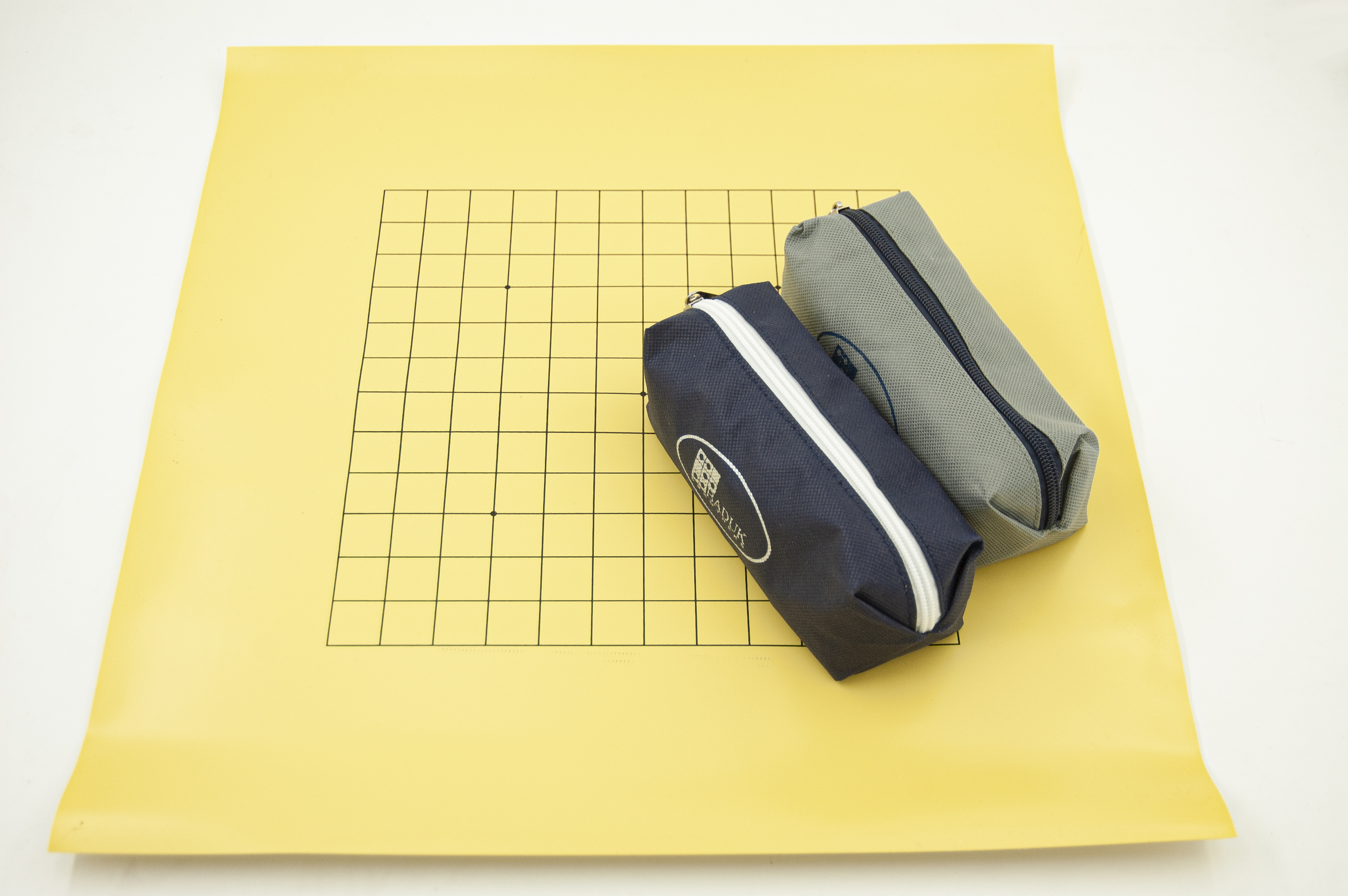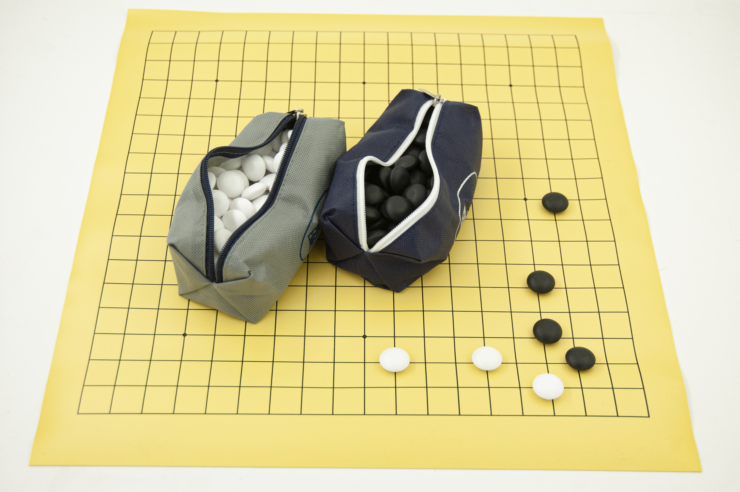 Reise-Go-Set mit solidem Kuststoffbrett, 19x19/13x13, und hochwertigen Kunststoff-Steinen, 21,5 x 10 mm, in einer praktischen Tragetasche.